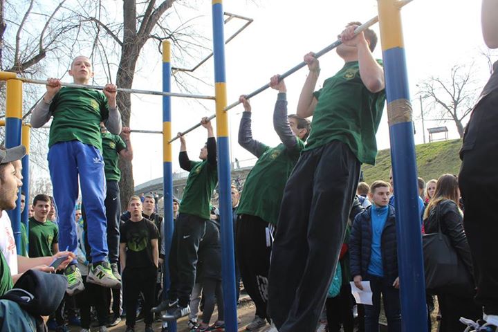 Студенти Університетського коледжу змагалися з командами інших вищих навчальних закладів Києва та проявили себе у різноманітних вправах: підйом гирі, підтягування на поперечині, присідання, віджимання на брусах, віджимання від підлоги.