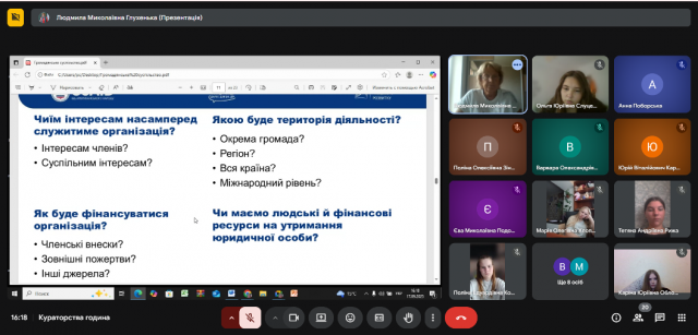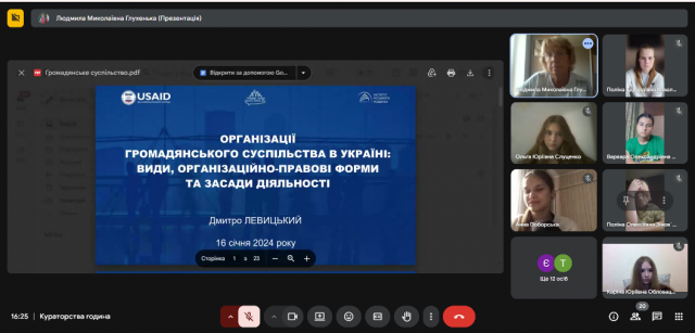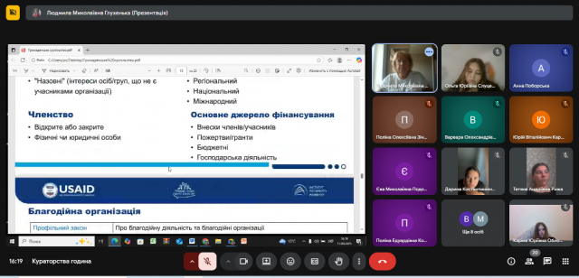 Під час зустрічі студенти ознайомилися з поняттями «громадянське суспільство», «громадські організації», особливостями їх функціонування в Україні та впливом війни на громадянське суспільство.