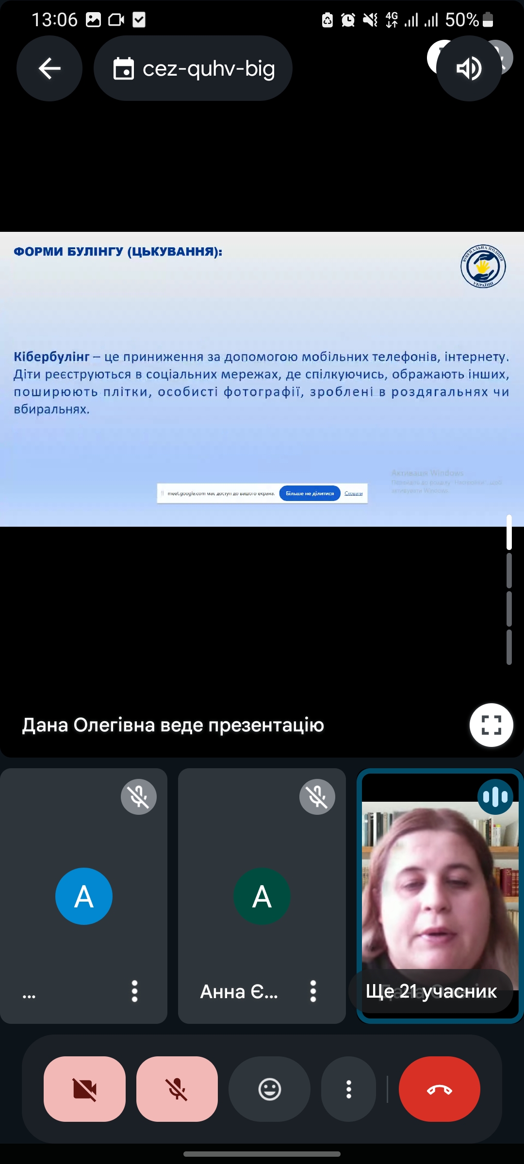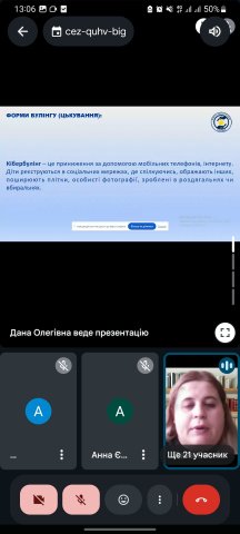 14.11.2025 р. було проведено просвітницько-профілактичну виховну годину «Що ви знаєте про булінг?» для студентів ІІІ курсу спеціальності "012 дошкільна освіта". Захід був спрямований на формування безпечного освітнього середовища та розвиток культури взаємоповаги. Під час заходу студенти обговорили сучасне розуміння явища булінгу, його форми та прояви, зокрема фізичний, психологічний та кібербулінг. Учасники проаналізували типові ситуації зі студентського життя, вчилися розрізняти конфлікт і цькування, а також визначати ролі учасників: агресора, жертви та спостерігачів.