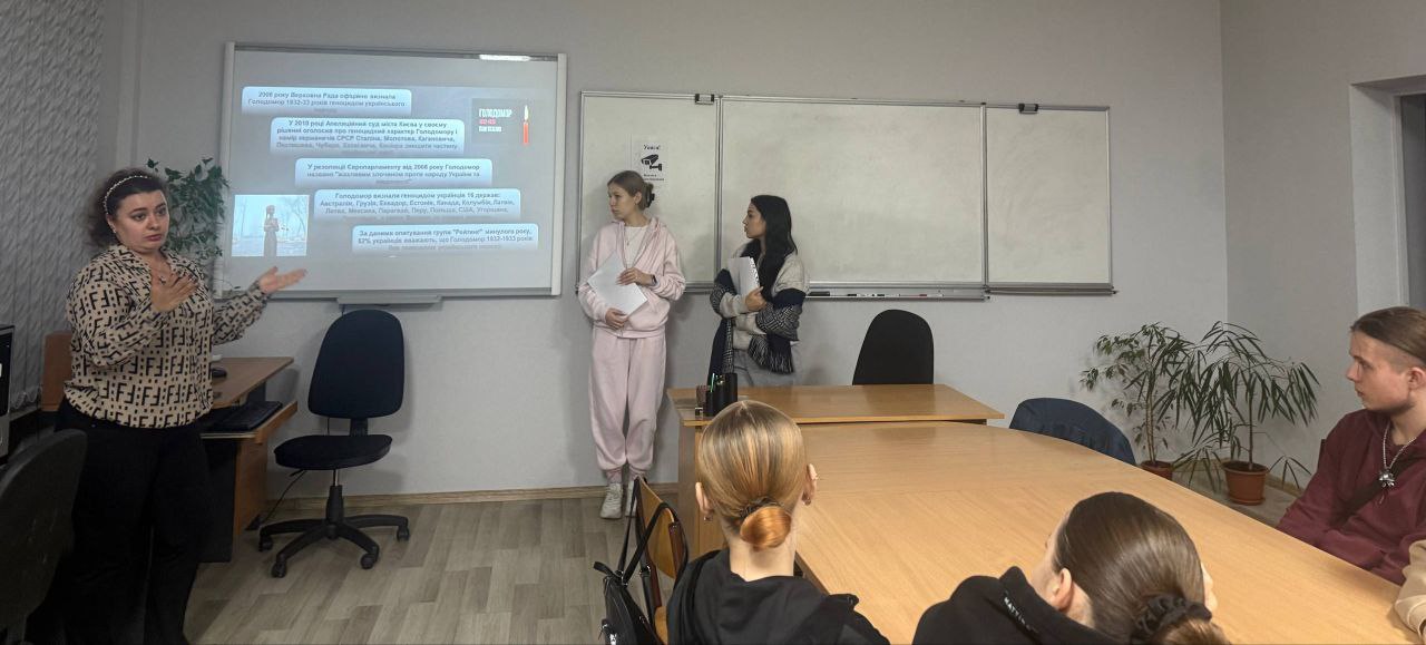 У межах виховної години студенти разом із куратором провели змістовний захід, присвячений двом знаковим подіям для українського народу — Дню пам’яті жертв Голодомору та Дню Гідності і Свободи. Ці теми об’єднує спільна ідея — незламність, прагнення до свободи та здатність українців відстоювати власну державність у найскладніші часи.