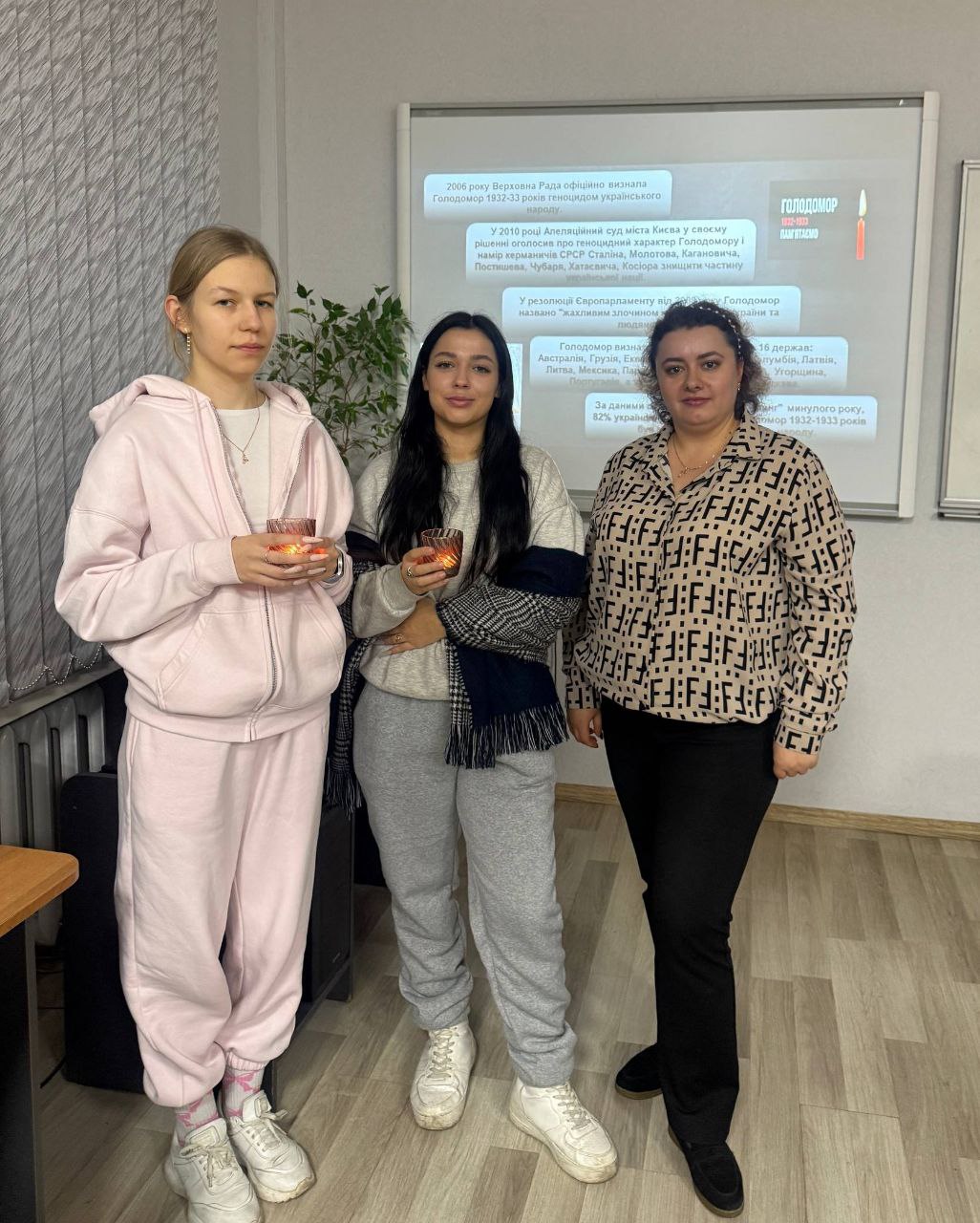 Студенти пригадали трагічні події 1932–1933 років — Голодомор, один з найстрашніших злочинів тоталітарного режиму. Обговорили причини геноциду, його наслідки для українського суспільства, а також важливість збереження історичної правди. Особливу увагу приділили темі родинної пам’яті, свідченням очевидців і символу запаленої свічки, яка нагадує, що кожне життя має цінність.