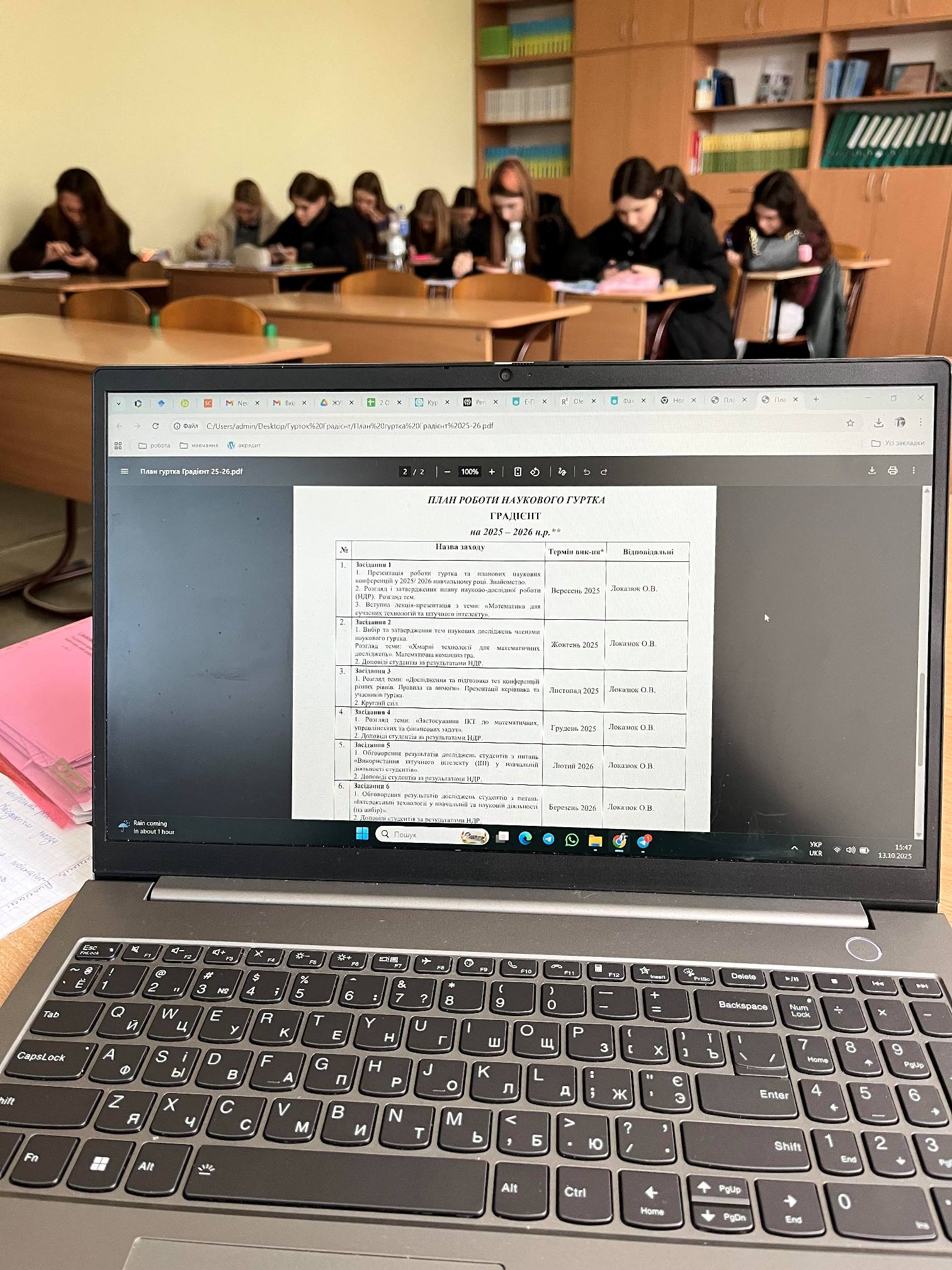 15 вересня 2025 року - на першому засіданні познайомилися з новими членами гуртка "Градієнт", обрали голову, заступників та секретаря гуртка. Склали план науково-дослідної роботи на новий навчальний рік.