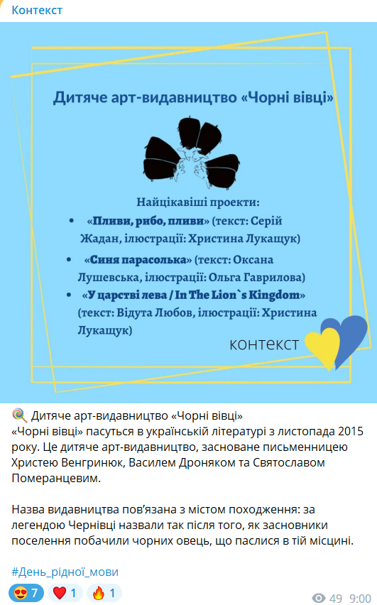 21 лютого 2023 року учасники наукового гуртка «Контекст» провели онлайн-марафон до Міжнародного дня рідної мови. Протягом дня в Телеграм-каналі гуртка публікувалися картки з інформацією про сучасні українські видавництва, що вирізняються нішевістю або унікальним підходом до справи, та їхні найбільш відомі україномовні видання.
