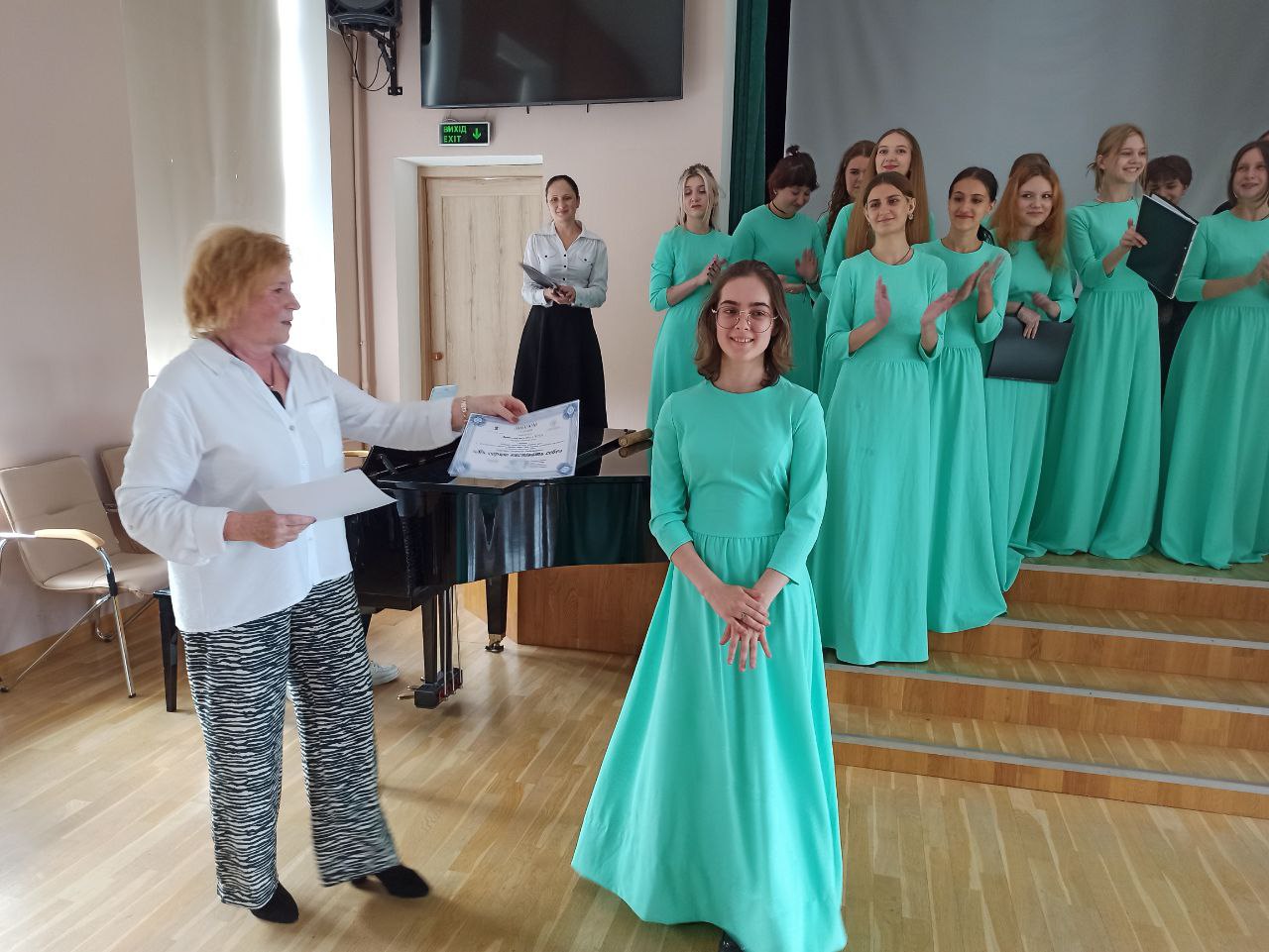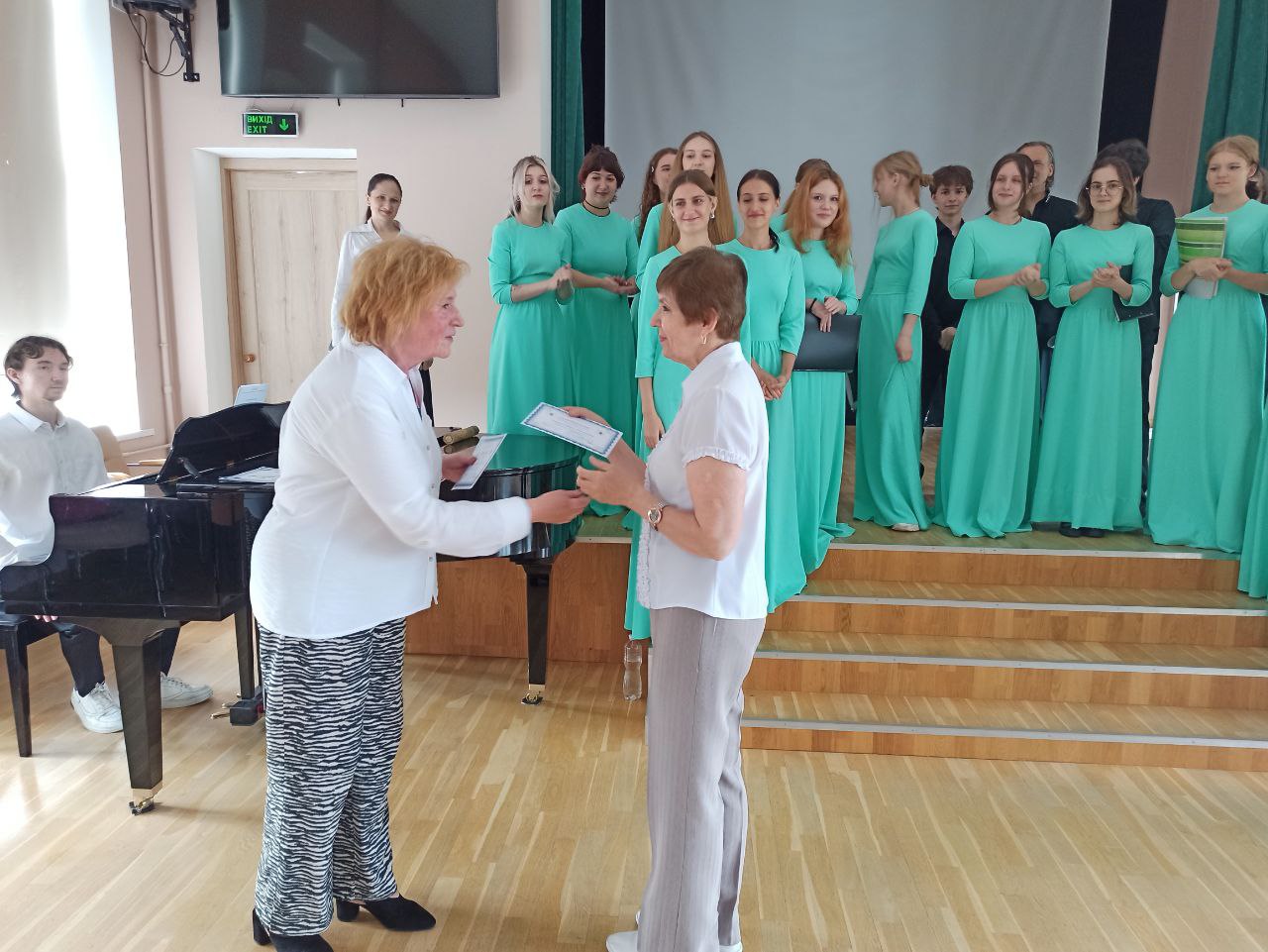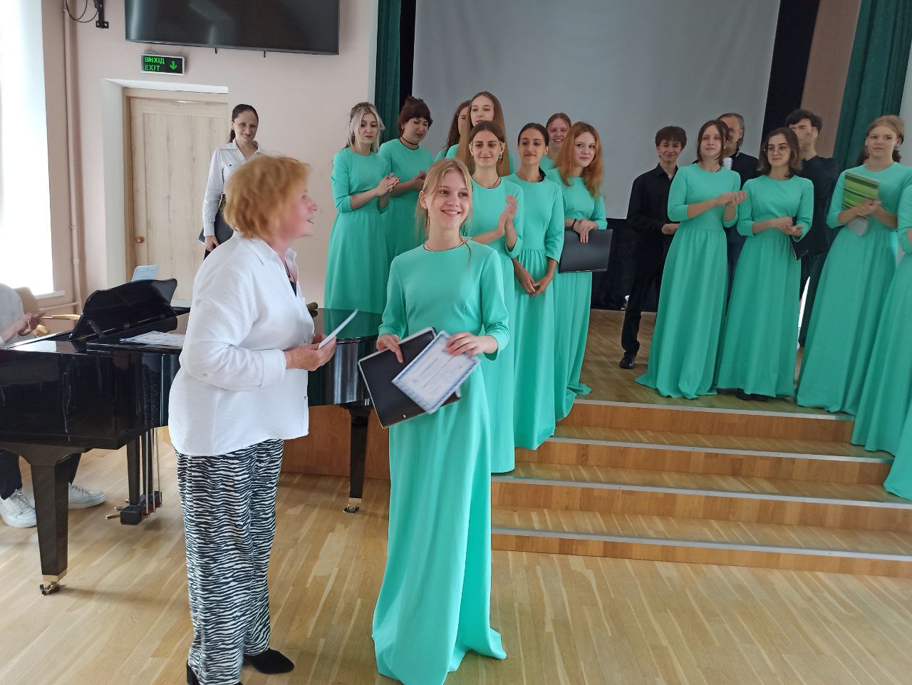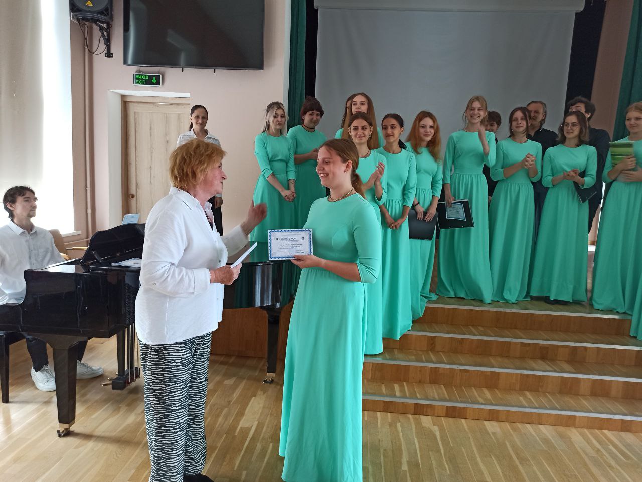 17.06.2024р. відбулося урочисте, заключне засідання студентського наукового гуртка "Консонанс", на яке було запрошено гостю, кандидата педагогічних наук, доцента кафедри теорії та методики музичної освіти, хорового диригування Факультету мистецтв ім.Анатолія Авдієвського університету ім. М.П.Драгоманова Тетяну Олександрівну Бодрову. Засідання було присвячене підведенню підсумків роботи студентського наукового гуртка за 2 семестр 2023/2024 навчального року.