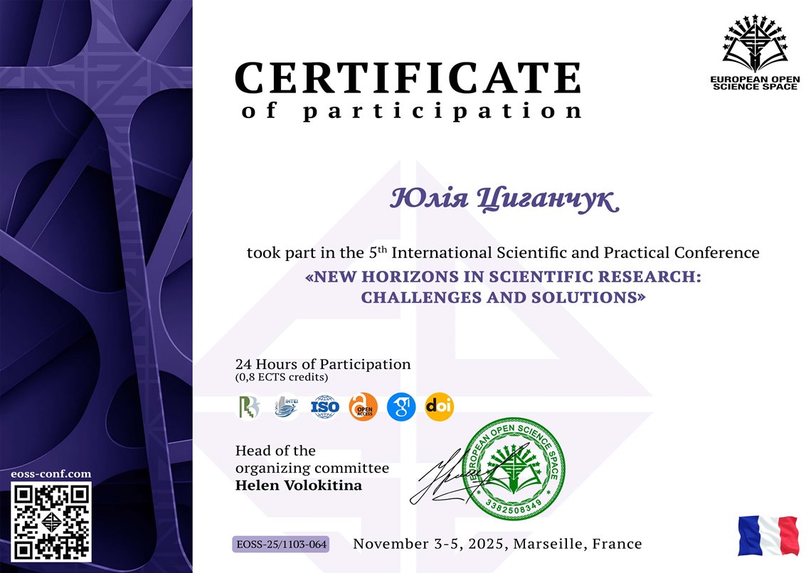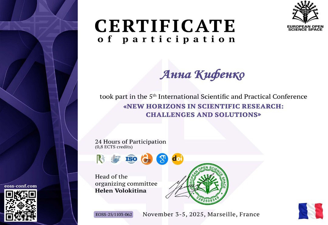 3 листопада 2025 року, викладачка циклової комісії музики і хореографії Анна Кифенко разом зі студентками спеціальності "Музичне мистецтво" Юлією Циганчук та Марією Клименко взяли участь у Міжнародній науково-практичній конференції “New Horizons in Scientific Research: Challenges and Solutions” (Марсель, Франція) та опублікували наукову роботу у збірці матеріалів конференції на тему "Хор як засіб духовного, естетичного та музичного розвитку особистості".