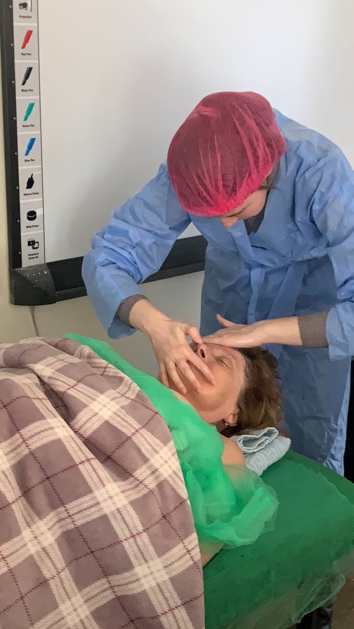На занятті знайомились з основними техніками японського масажу Кобідо. Аналізували які косметичні інгредієнти найбільше підходять для виконання релаксійної частини масажу. Обговорювали створення рецепту і склали план виготовлення відповідного засобу на наступних заняттях. Студенти створювали логотип для власного крему.