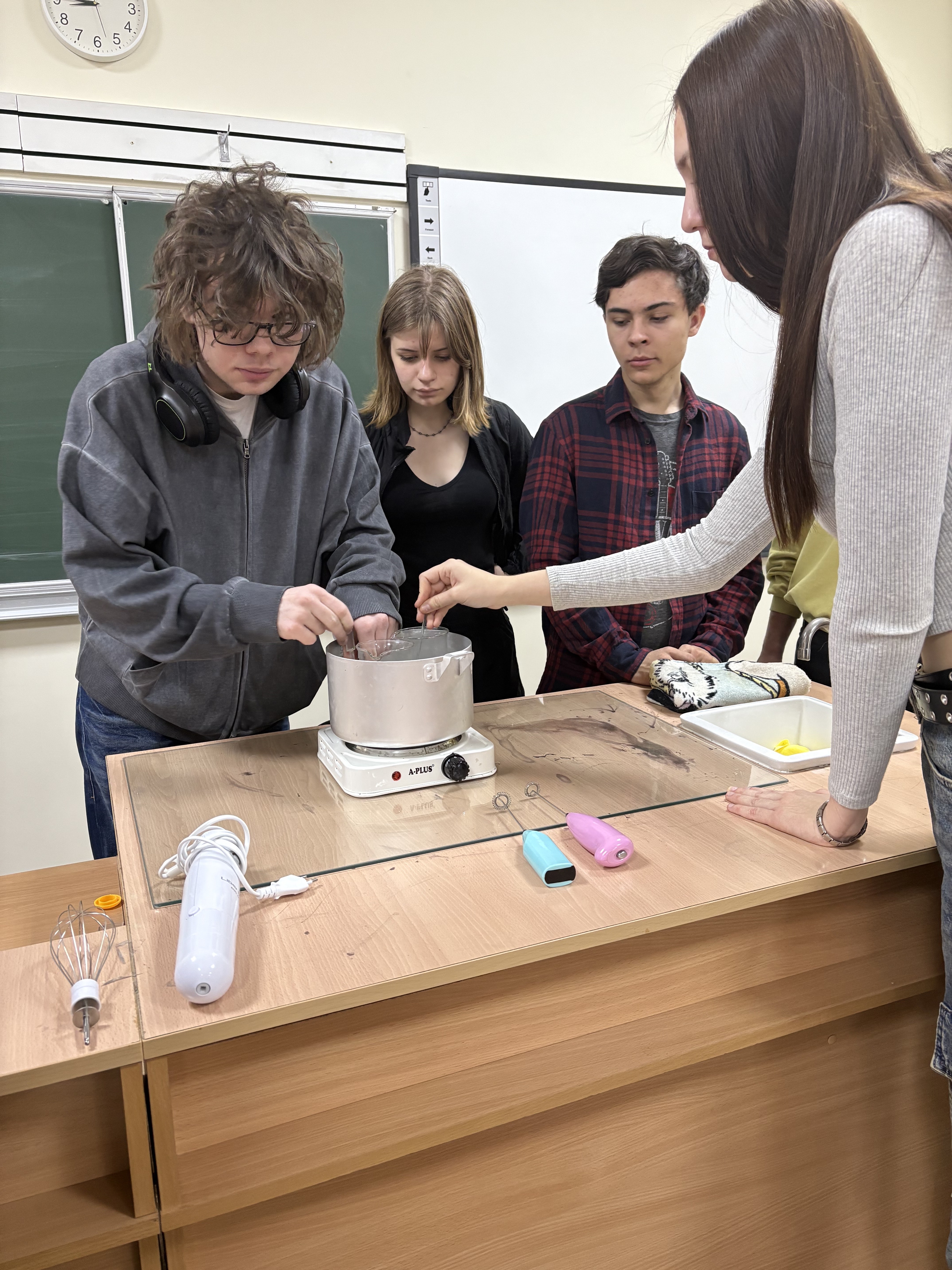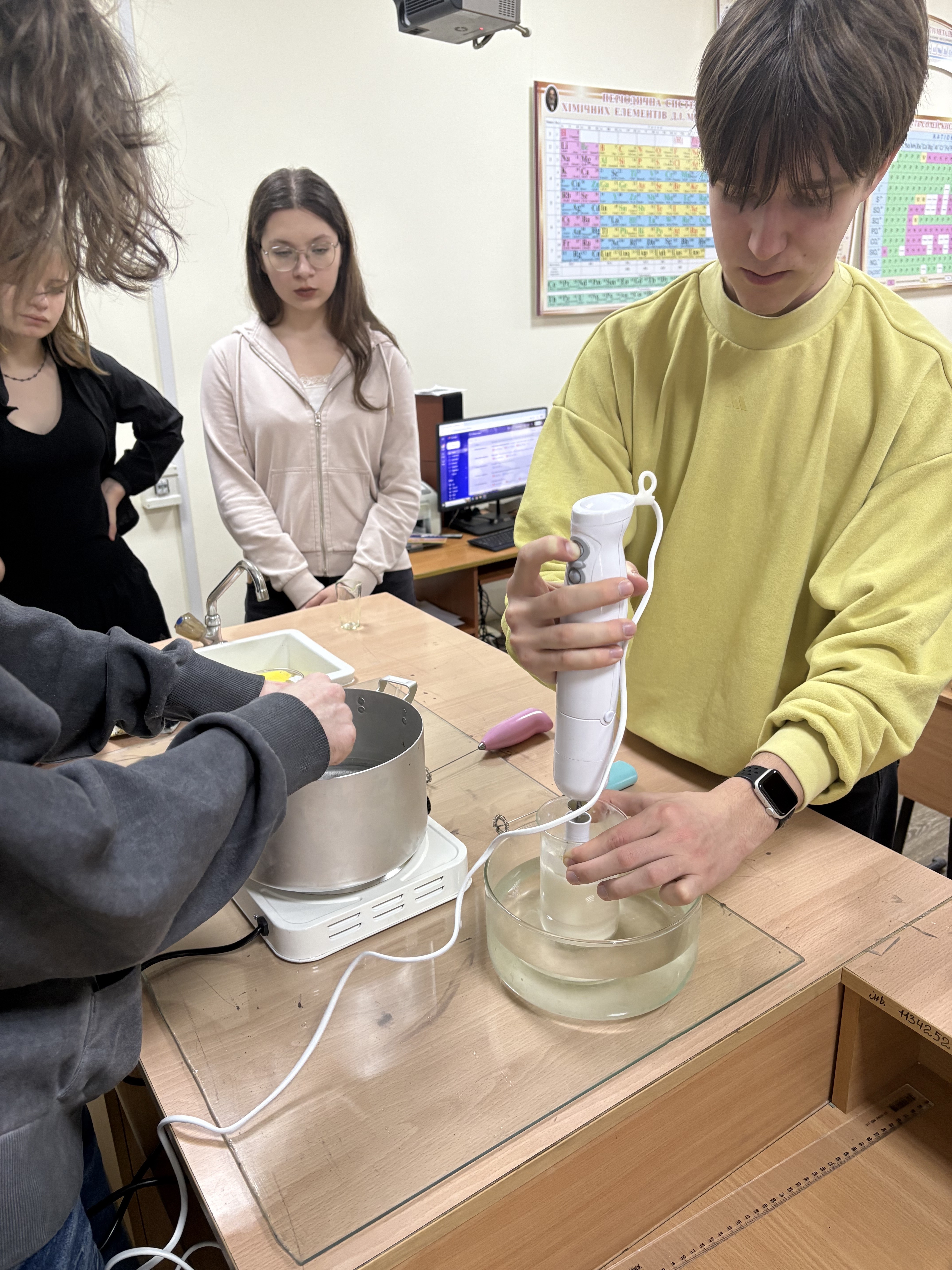 10.03.2025 відбулось засідання гуртка «Косметична хімія» на тему «Свідоме керування здоровʼям шкіри».Студенти вчилися виготовляти косметичні засоби для конкретного типу шкіри; створювали індивідуальні композиції, враховуючи свій тип шкіри та свою активність, наявні або можливі проблеми, погодні умови тощо. Виготовлені креми та сироватки забрали для подальшого дослідження впливу на шкіру обличчя.
