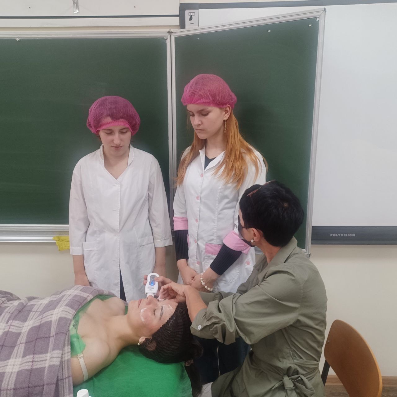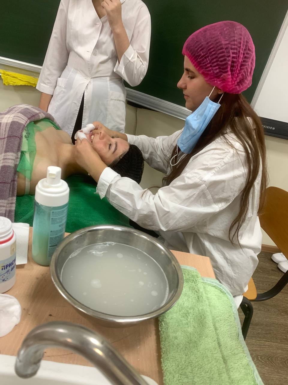- Керівник гуртка ознайомила студентів з етапами професійного догляду за шкірою обличчя, підкресливши значення очищення для ефективності подальших процедур.