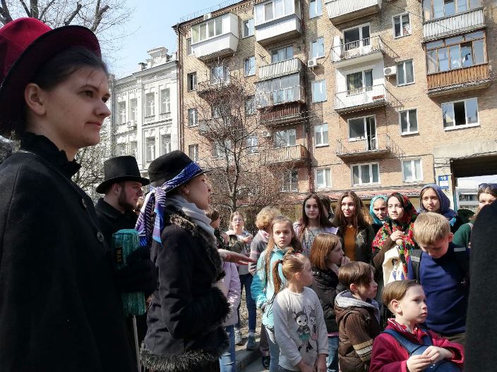 6 квітня 2019 року учасники НТ САДМВ Університетського коледжу Київського університету імені Бориса Грінченка провели театралізовану екскурсію для учасників краєзнавчого гуртка клубу «Лотос» ОКЦ «Дивосвіт» «Київ часів Бориса Грінченка». Під час екскурсії маленькі мандрівники зустріли типових представників української інтелігенції кінця XIX початку XX століття, зокрема професора університету та його студентів, гімназисток та класну даму, дворянок, митців, а також представниць нижчих прошарків суспільства: торговок та жебрачок. Особливу увагу привернула місткиня, яка намагалася залучити екскурсантів до своїх містичних практик. Учасникам наукового товариства Університетського коледжу вдалося цікаво поєднати історичну інформацію та театралізовані елементи.