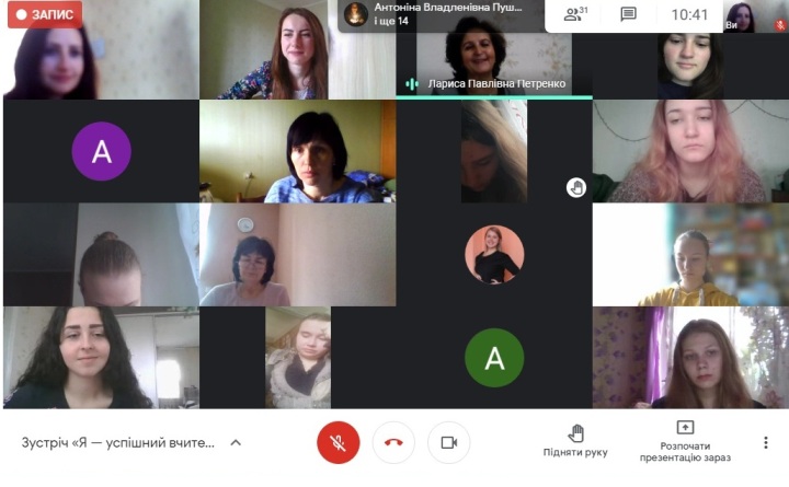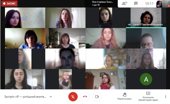 Пані Марина познайомила студентів з власним досвідом роботи, розказала про нові методи та види роботи, які активно використовує у навчанні і вихованні школярів. Марина Олександрівна в роботі поєднує традиційні методи навчання та сучасні інформаційні технології, у тому числі й комп’ютерні, зокрема активно застосовує на уроках відеонаочність. Особлива цінність таких наочних засобів навчання полягає в тому, вважає вчителька, що вони дозволяють візуалізувати низку абстрактних понять і процесів, виробничих технологій і операцій, особливо зараз, під час дистанційного навчання. Студенти з цікавістю слухали пані Марину, ставили запитання.