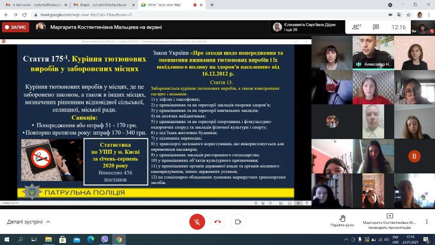 Майбутні юристи та педагоги ознайомилися з правилами громадської безпеки та змогли отримати відповіді на питання щодо адміністративних та кримінальних правопорушень, що посягають на громадський порядок та безпеку.