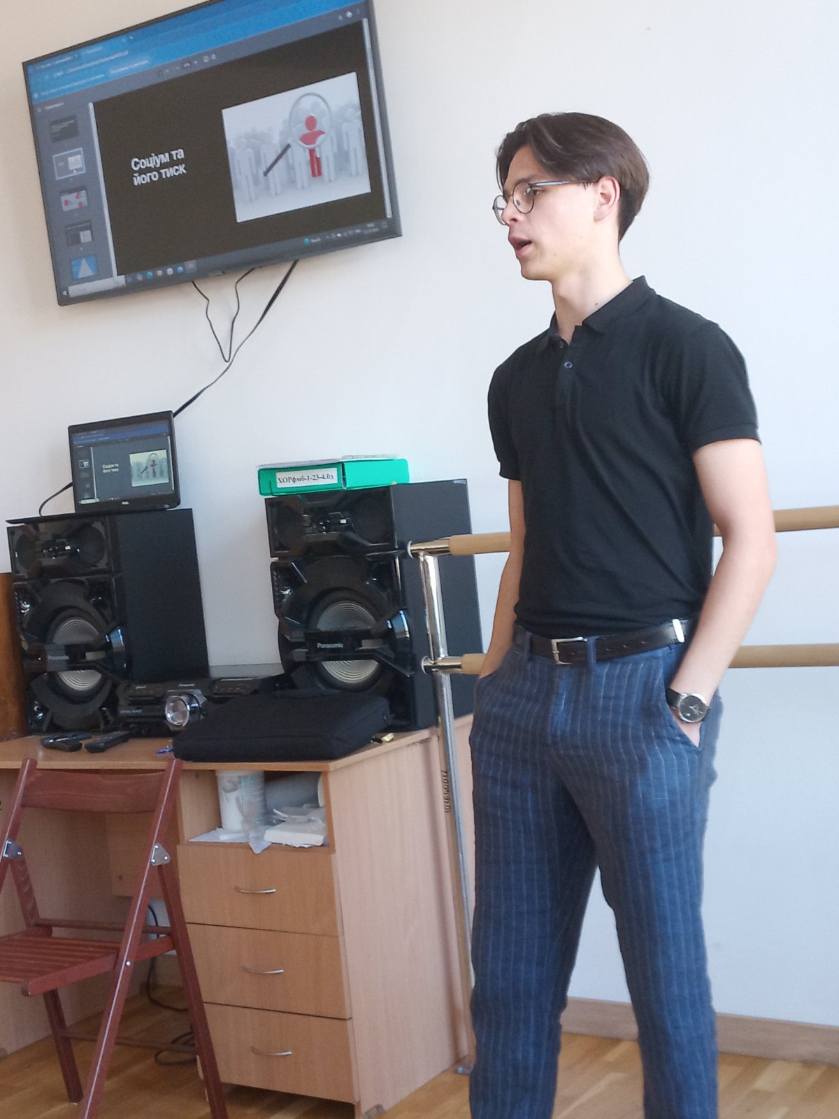 У своїй розповіді Дмитро порушив питання конкуренції у мистецтві, соціуму та його тиску на творчу особистість, відданості своїй справі та пошуку власного стилю у хореографічній діяльності. Висвітлення цих тем супроводжувалося демонстрацією змістовної та цікавої презентації, яка спонукала до роздумів.