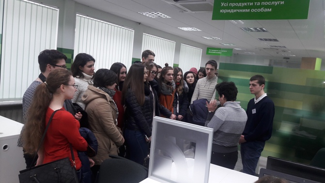 14.02.2017 р. було проведено виїзне практичне заняття з дисциплін «Аудит підприємницької діяльності», «Казначейська справа», «Банківські операції» для студентів ІІІ курсу спеціальності Фінанси і кредит в приміщенні ПриватБанку за адресою: Предславенська, 19.
