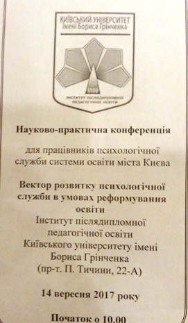 14 вересня 2017 року викладачі ЦК з педагогічної освіти Університетського коледжу Київського університету імені Бориса Грінченка Потоцька Ю.В. та Чечко Т.М. взяли участь в науково-практичній конференції для соціальних педагогів та практичних психологів міста Києва «Вектор розвитку психологічної служби в умовах реформування освіти».