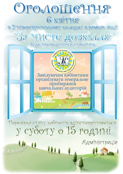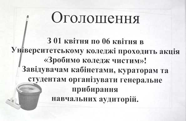 6 квітня в Університетському коледжі за ініціативи Студенської ради та керівництва коледжу пройшла акція «Зробимо коледж чистим».