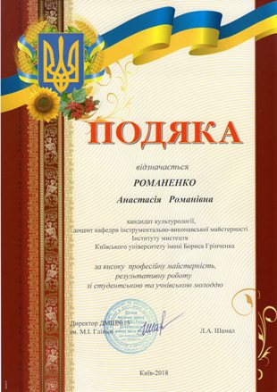 09 листопада 2018 року у концертній залі Київської ДМШ № 13 ім. М.І. Глінки відбувся профорієнтаційний концерт «Музика й Осінь…» за участі студентів спеціальності «Музичне мистецтво» Інституту мистецтв та Університетського коледжу Київського університету імені Бориса Грінченка разом із кандидатом культурології, доцентом кафедри інструментально-виконавської майстерності Анастасією Романенко та Лауреатами Всеукраїнських і Міжнародних конкурсів Галиною Тимах (флейта), Христиною Голян (soprano) й старшим викладачем Михайлом Тущенком.