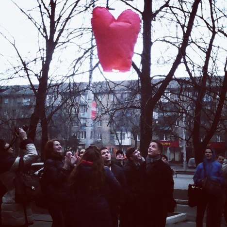 18 лютого 2014 Запуск небесних ліхтариків 14 лютого 2014 рокуУніверситетський коледж м. Київ, просп. Ю. Гагаріна, 16 О 16.00 представники кожної групи взяли участь у запуску небесних ліхтариків. Подивитися на яскраве дійство зібралися студенти нашого коледжу та просто перехожі.