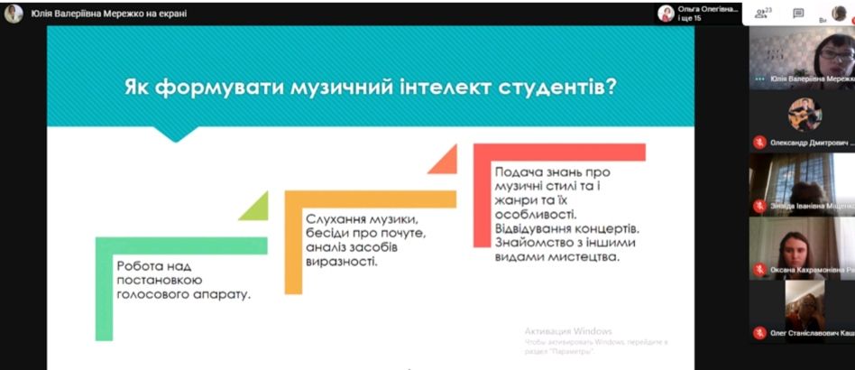 У своїй лекції Юлія Валеріївна надала розгорнуті відповіді на запитання: «Що характеризує вокально підготовленого вчителя музичного мистецтва?» , «Як формувати музичний інтелект студентів?» та інші.