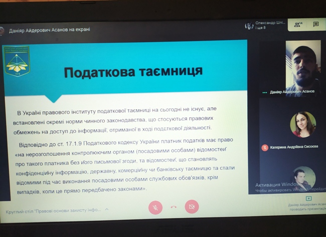 18 травня 2020 року в рамках Фестивалю науки у Фаховому коледжі «Універсум» відбувся круглий стіл «Правові основи захисту інформації в Україні: сучасний стан та перспективи розвитку», участь в якому взяли студенти 4 курсу спеціальності «Право». Учасники круглого столу обговорили такі актуальні питання: