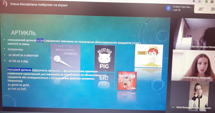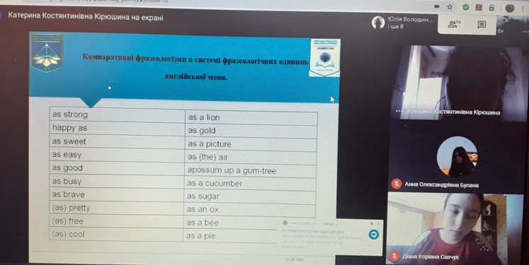 21.05.2020 р. в рамках Фестивалю науки було проведено науково-практичний семінар на тему: "Фразеологічні компаративні звороти на позначення людини (на матеріалі фразеологізмів типу "as white as snow").