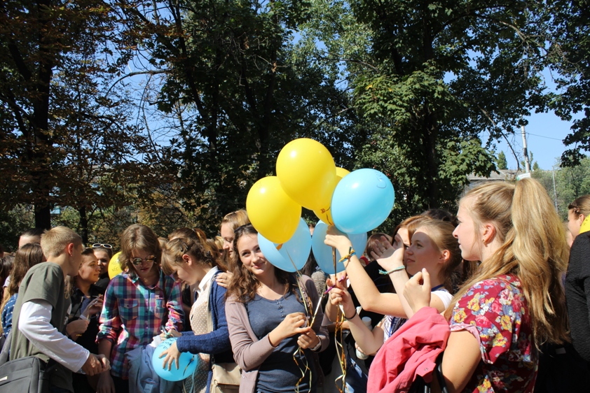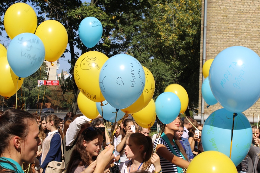 Під час великої перерви першокурсники стали глядачами танцювального флешмобу, який для них підготували студенти-другокурсники різних спеціальностей. Учасники флешмобу та глядачі випустили у небо жовто-блакитні кульки, на яких написали найзаповітніші бажання. Захід мав продемонструвати єдність першокурсників зі студентами та викладачами Університетського коледжу, з усією грінченківською родиною та рідною Україною. Студенти найчастіше писали про мир і спокій в Україні, особисті мрії і свої подальші плани в Університетському коледжі Київського університету імені Бориса Грінченка.