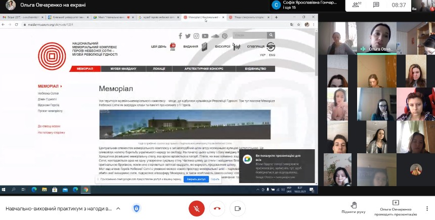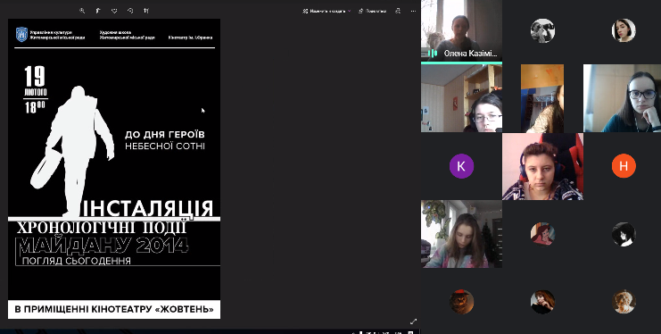 18 лютого 2021 року в Фаховому коледжі «Універсум» Київського університету імені Бориса Грінченка відбувся «Навчально-виховний практикум з нагоди вшанування пам'яті Героїв Небесної Сотні». До заходу були залучені студенти 3-4 курсів спеціальності 022 Дизайн. На зустрічі згадували подвиг громадян які змінили історію нашої держави, створювали плакат присвячений подіям лютого 2014 року.