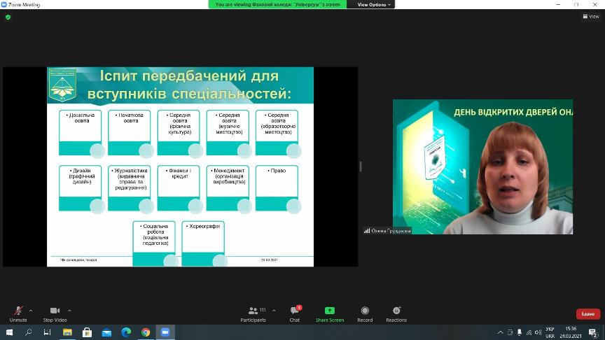 24 березня 2021 року у Фаховому коледжі «Універсум» Київського університету імені Бориса Грінченка відбувся ДЕНЬ ВІДКРИТИХ ДВЕРЕЙ ОНЛАЙН.