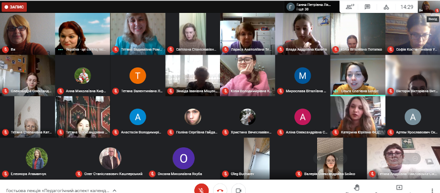 Пані Леся ознайомила присутніх із характерними жанрово-функціональними особливостями та рисами всіх циклів календарно-обрядових пісень. Під час лекції Леся Володимирівна демонструвала свої власні композиції календарно-обрядових пісень, транслювала відеофрагменти концертних номерів. Композиторка наголосила на важливості етнопедагогічного пісенного виховання дітей, що базується на засадах патріотизму та національної ментальності.