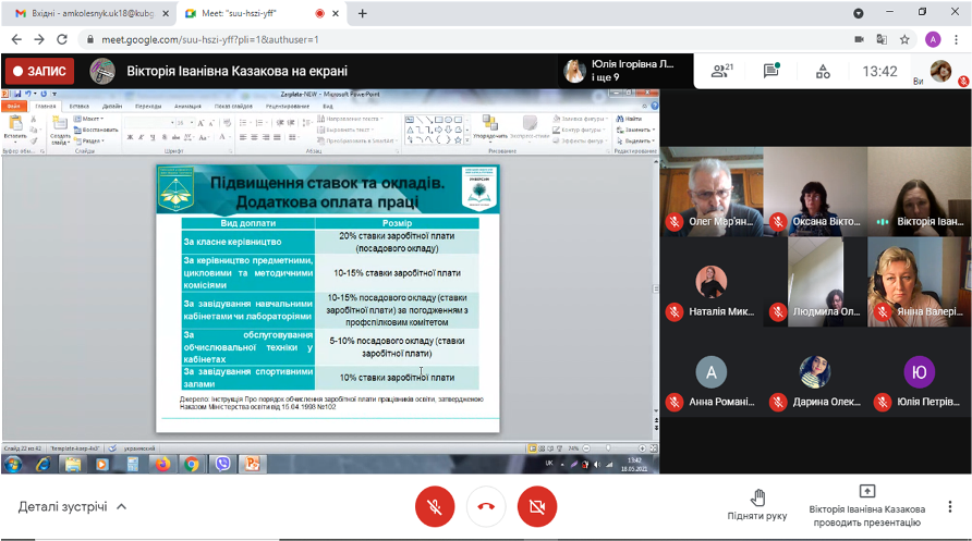 18.05.2021 р. відбувся науковий семінар-практикум на тему "Заробітна плата 2021". Розглядалися актуальні питання теорії і практики нарахування та виплати заробітної плати науково-педагогічних працівників, особливості оподаткування доходів фізичних осіб у 2021 р.