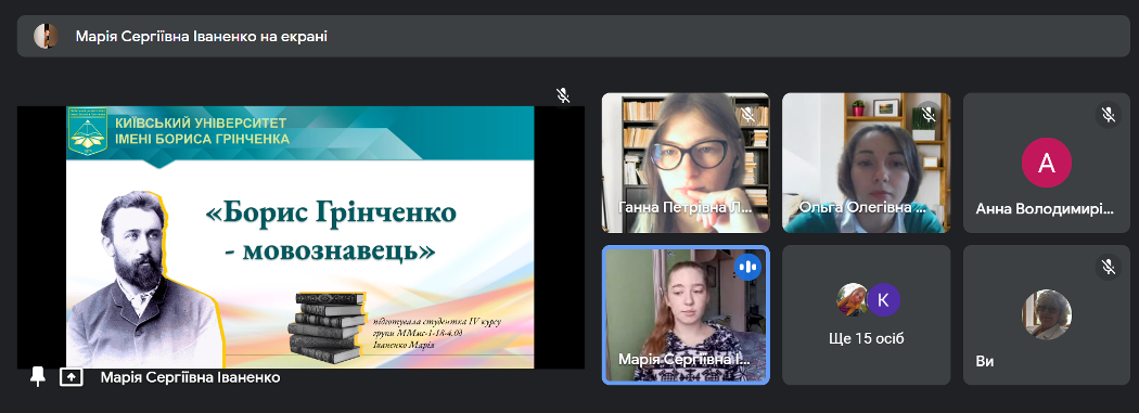 04.12.2021р. на засіданні студентського наукового гуртка «Консонанс» був проведений науковий семінар «Педагогічні ідеї Бориса Грінченка в мистецькій освіті молодших школярів сучасної української школи».