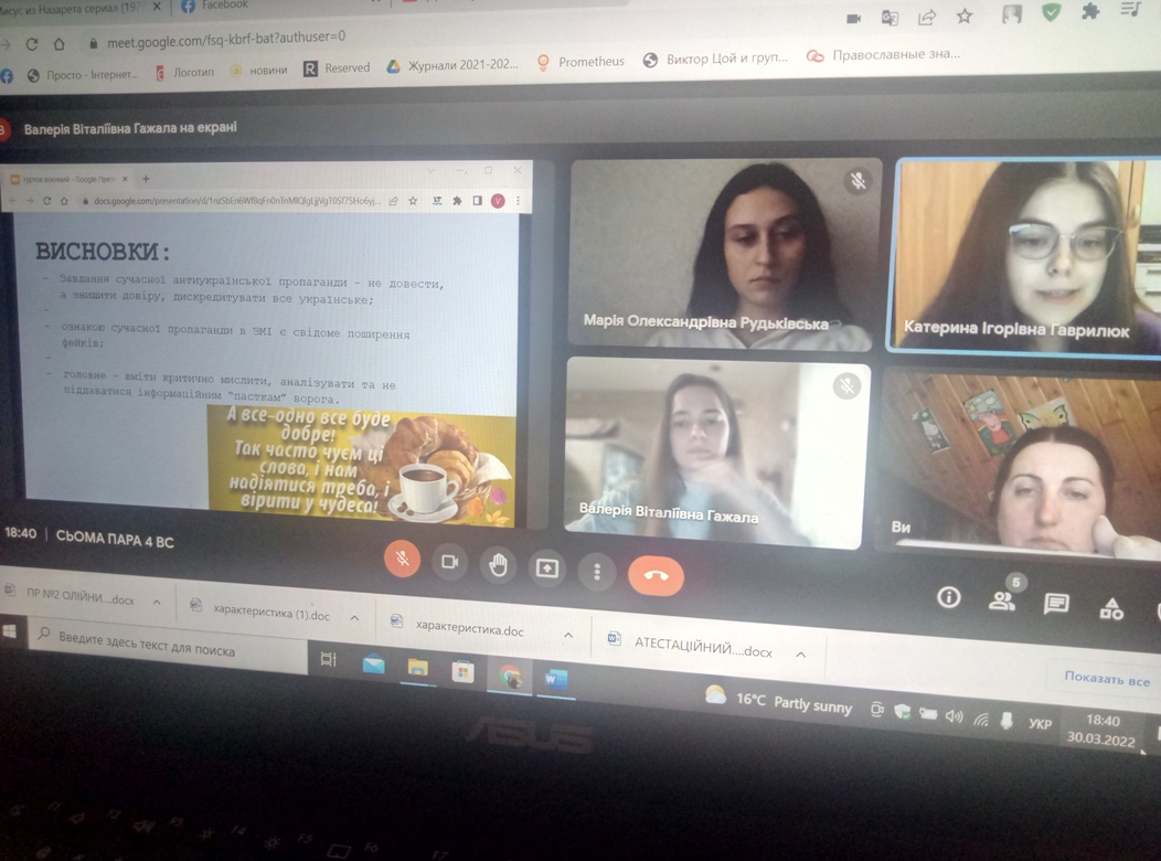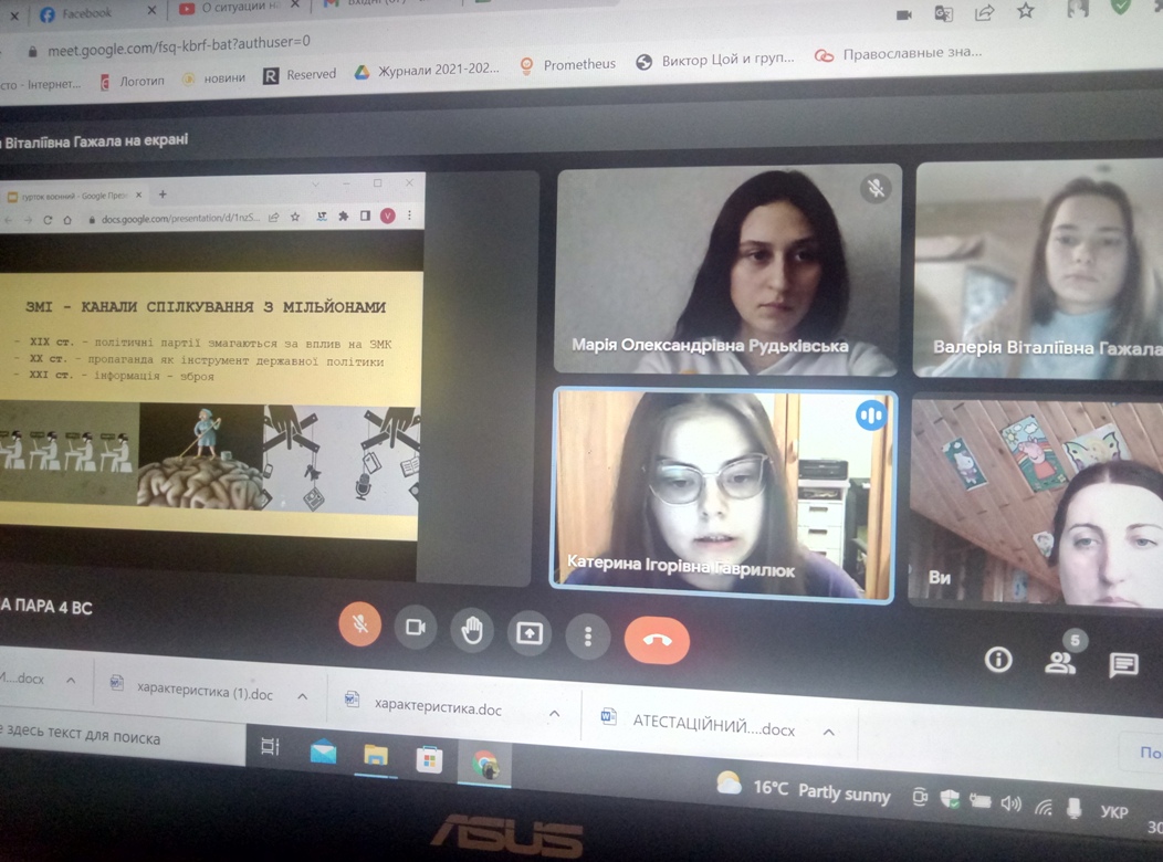 30 березня 2022 року відбулося практичне заняття «Роль ЗМК у житті суспільства (вплив на думки, формування національно-державної ідентичності, вплив видань на політику, вибори, заворушення)».