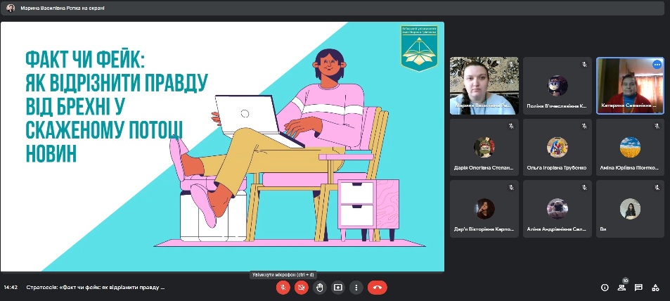 Продовжуючи декаду циклової комісії з педагогічної освіти 14 квітня 2022 року відбулася стратсесія «Факт чи фейк: як відрізнити правду від брехні у скаженому потоці новин». Зараз ми поглинаємо величезну кількість інформації, деяка її частина – фейк. Тому зараз надважливими є навички фактчекінгу. Ми розглянули: як шеряться фейкові дописи у соціальних мережах, чим займається фактчекер, розвінчали деякі укорінені міфи про України, які сервіси, сайти, додатки перевіряють новини на правдивість, сформували свою стратегію боротьби з фейковою інформацією та узгодили 8 коротких, але ефективних порад як розпізнати неправдиві новини:
