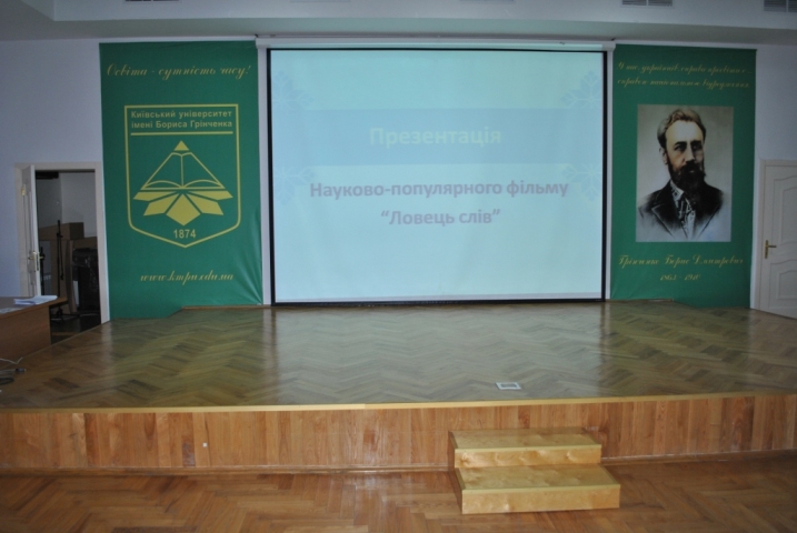 05 грудня 2014 Презентація науково-популярного фільму Першого Національного каналу «Ловець слів», присвяченого Б.Д.Грінченку 04 грудня 2014 рокуУніверситетський коледж м. Київ, просп. Ю. Гагаріна, 16