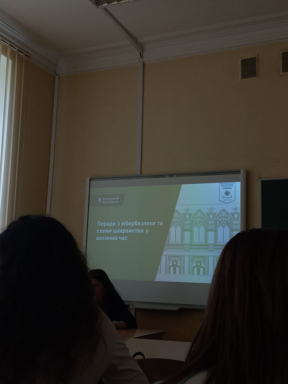 11 травня 2023 року відбувся захід на тему «Поради з кібербезпеки та схеми шахрайства у воєнний час» для студентів спеціальності «Менеджмент» та «Фінанси, банківська справа та страхування».