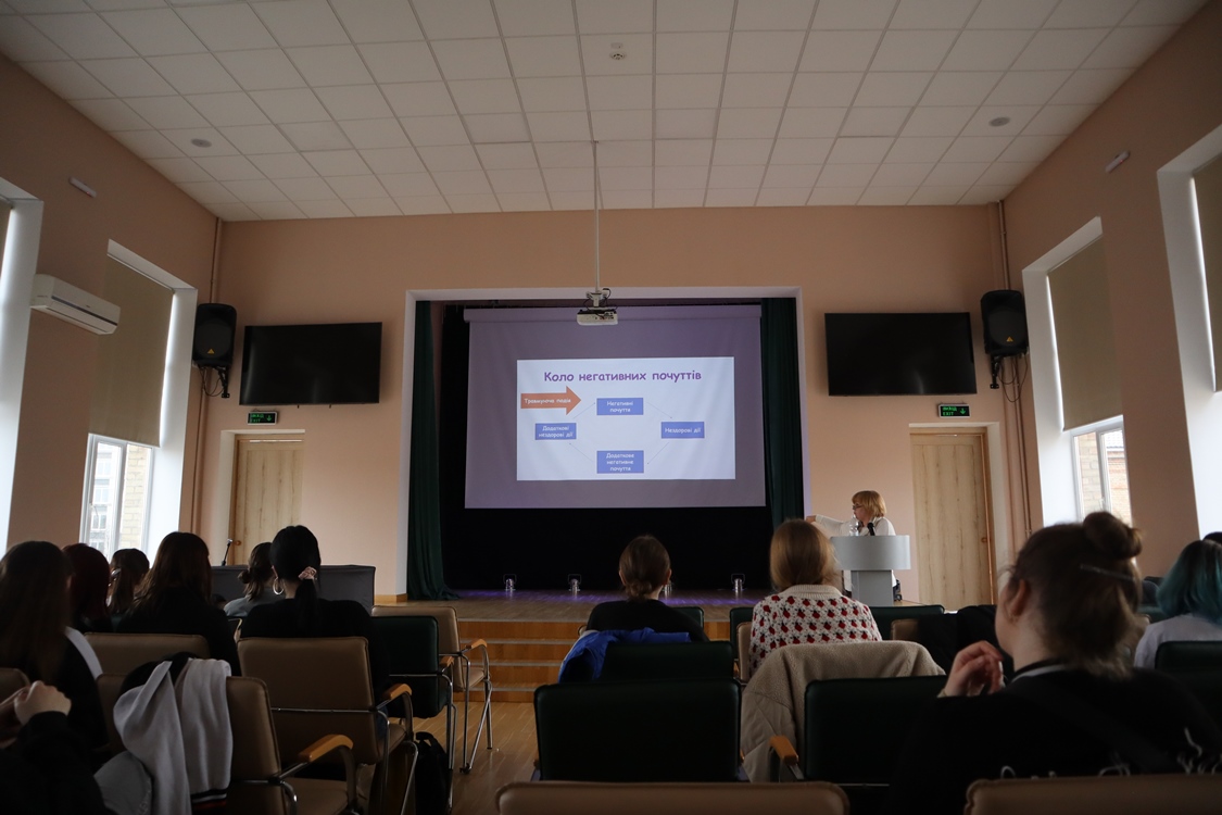 01 березня 2023 року у Фаховому коледжі "Універсум" за ініціативи Ради студентського самоврядування для студентів всіх спеціальностей відбувся тренінг від Світлани ФЕСИК, практичного психолога, волонтерки, фільмо-терапевта та членкині громадської організації "Асоціація ЕМДР в Україні - фахове об’єднання зі спеціальної травмотерапії", спрямований на питання психологічного здоров`я підлітків. Упродовж заходу студенти поділилися своїми переживаннями й актуальними проблемами та намагалися знайти їх вирішення у консультації психолога.
