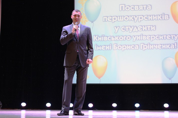 За гарною традицією свято розпочалось зі спільного виконання гімну України. На свято до першокурсників завітав Київський міський голова –Віталій Володимирович Кличко.
