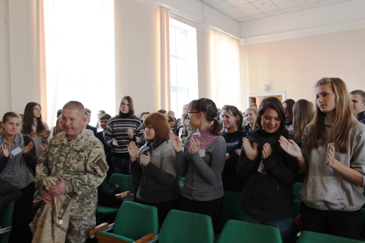 В рамках відзначення Дня захисника України, 12 жовтня в Університетському коледжі відбулась зустріч студентів з учасниками антитерористичної операції на сході України. Після перегляду кінофільму студенти мали змогу запитати все, що їх цікавило в учасників бойових дій. Приємною несподіванкою для бійців стали вірші, які студенти присвятили їм та пісня, яку першокурсники виконали під командуванням товариша полковника Василя Йосиповича.