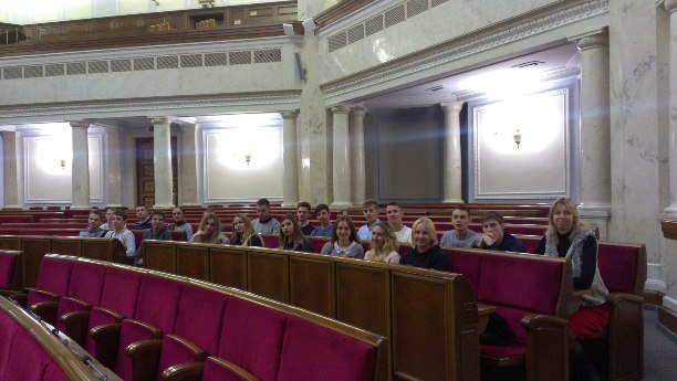 Під час заходу студенти познайомилися з історією будівлі парламенту, побували в кулуарах та сесійній залі єдиного законодавчого органу нашої держави.