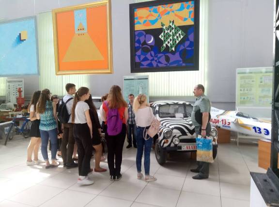 Студенти ознайомились з історією інституту і 13 напрямам розвитку науки і техніки в Україні і у світі в цілому: електроніка, приладобудування, радіотехніка, телекомунікації, інформатика, розробка корисних копалини, промислові технології, машинобудування, авіація і космонавтика, транспорт, енергетика. Окрім цього, в музеї є виставки техніки військового зв'язку і стрілецької зброї.