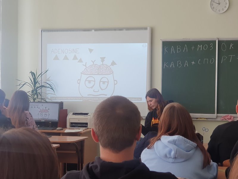 Під час перегляду презентацій та відео фрагментів, які підготували студенти групи ФВфмб-1-21-4.Од (Зуєва Поліна, Боковенко Ірина, Бардаш Тетяна, Шмат Руслана, Кирниченко Марк, Новіченко Катерина) студенти 1 курсу мали змогу виявити вплив кави на головний мозок та на організм підлітків. Як результат, відбулася цікава дискусія з приводу користі і шкоди кави для майбутніх спортсменів.