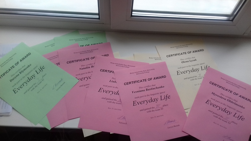 Три команди змагалися за право першими скласти цитату відомого поета з важливою істиною життя. Завдання були спрямовані на активізацію набутого лексичного та граматичного матеріалу, розвиток індивідуальних аналітичних навичок та умінь. Командна робота сприяла досягненню спільного результату.