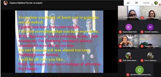 Попередньо члени гуртка отримали завдання переглянути кінострічку «Now You See Me» в оригіналі із субтитрами, а в онлайн-форматі на платформі Google Meet студенти ділилися враженнями та виконували завдання за сюжетом фільму.
