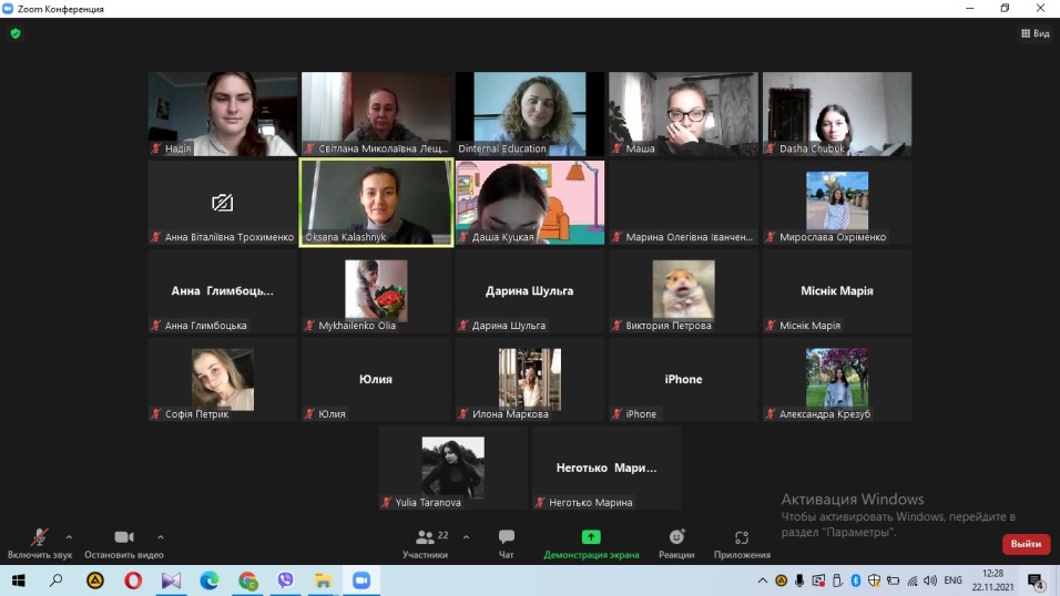 22 листопада 2021 року відбулася зустріч студентів групи ПОмс-1-18-4.0д Фахового коледжу «Універсум» Київського університету імені Бориса Грінченка з Людмилою Сидорчук, методистом Dinternal Education, досвідченим викладачем англійської мови (кваліфікація CELTA), співавтором серії книг Fly High Ukraine, сертифікованим екзаменатором міжнародних іспитів Pearson English International Certificate та Pearson English International Certificate Young Learners. Зустріч проходила у форматі гостьової інтерактивної лекції на тему «EffectivelessonplanningforGenerationAlphakidswithTeamTogether». Людмила Сидорчук розповіла про особливості роботи з дітьми молодшого шкільного віку та поділилася ефективними прийомами навчання учнів англійської мови.