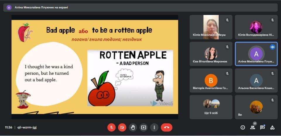 28.10.2022 р. було проведено засідання наукового гуртка "Lingva" на тему " "Смачні" ідіоми англійської мови у переносному значенні та способи їх відтворення українською мовою".