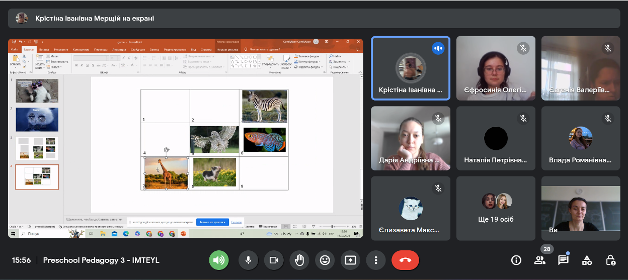 16 березня 2023 року для студентів ІІІ курсу спеціальності «Дошкільна освіта» було проведено воркшоп з формування мовних навичок у дітей дошкільного віку. На заході відбулася презентація різноманітних ігрових прийомів, які сприяють залученню дітей до іншомовного середовища, кращому запам'ятовуванню лексичних одиниць та тренуванню їх у мовленні.