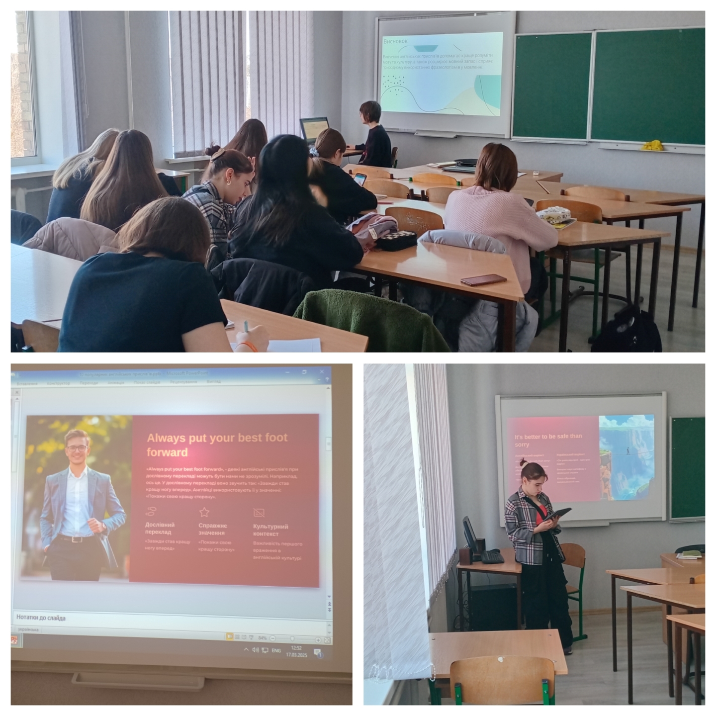 17 березня 2025 року у рамках декади циклової комісії іноземних мов було проведено науковий калейдоскоп на тему "Англійські прислів'я та приказки у сучасному мовленні молоді". Під час зустрічі студенти розглянули сучасні прислів'я та приказки англійської мови, особливості їх перекладу та вживання у мовленні.