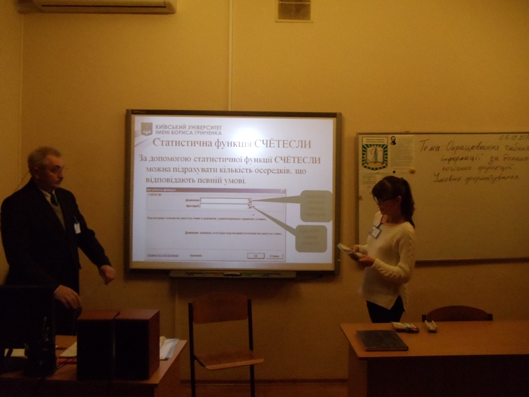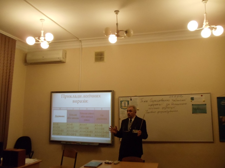 05 грудня 2016 викладачем Мащакевичем Олегом Мар’яновичем було проведене відкрите заняття з обчислювальної техніки і програмування зі студентами групи ДЛмс-1-15-3.Од на тему «Опрацювання табличної інформації за допомогою логічних функцій. Умовне форматування».