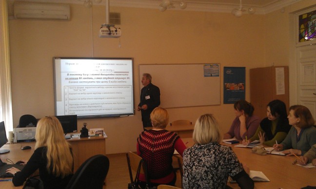 Олег Мар’янович підготував презентацію-огляд, в якій проаналізував помилки та недоліки, що були допущені викладачами при формуванні тестових завдань для РКР в листопаді 2012 року, а також проінформував про нові вимоги, щодо пропорційного розподілу видів тестових завдань та створення банку тестових питань. Після презентації були продемонстровані методи та способи створення банку питань та правила формування тестів.