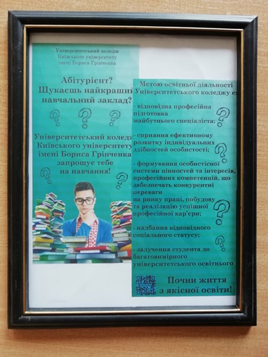 19 березня 2019 року в Університетському коледжі Київського університету імені Бориса Грінченка відбувся конкурс макетів флаєрів, створених засобами графічних редакторів з метою реклами Коледжу та спеціальностей. Переможцями стали студентки 4 курсу спеціальності «Дизайн» Шрамко Марія та Гапон Анна.
