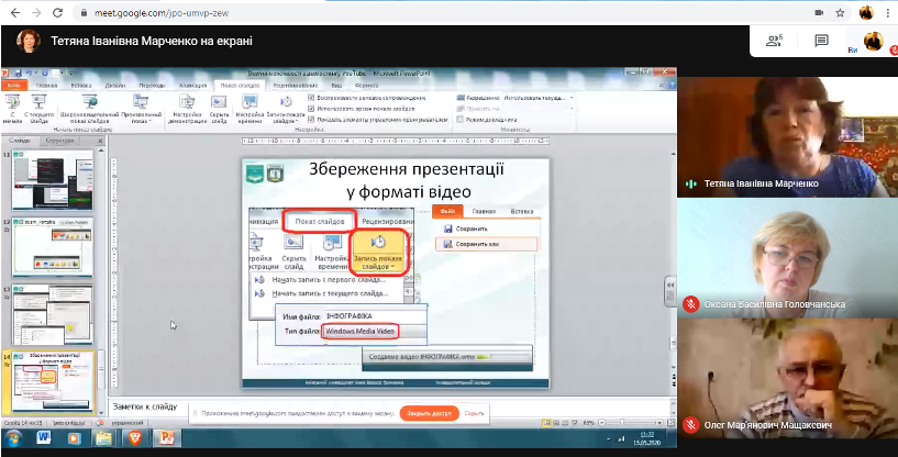 • Збереження презентації у форматі відео.